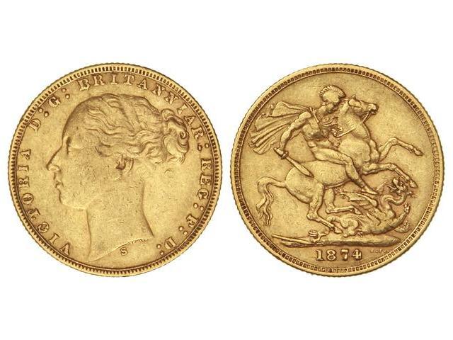 1 Soberano. 1874. VICTORIA. AU. (Golpecitos). KM-752. MBC/MBC+.