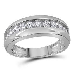 1 CTW Mens Round Diamond Single Row Wedding Ring 10kt White Gold - REF-81X5T