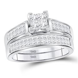 REF-119H1W - SKU: GD94269 ---- Diamond Cluster Bridal Wedding Engagement Ring Band Set 1.00 Cttw 14kt White Gold Gemstone Details1.00 Carats total
