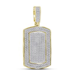 Mens Diamond Dog Tag Charm Pendant 7/8 Cttw 10kt Yellow Gold