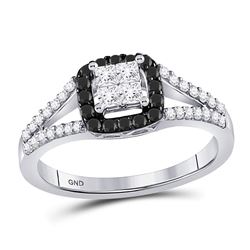Round Black Color Enhanced Diamond Cluster Ring 1/2 Cttw 10kt White Gold