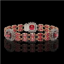 34.11 ctw Ruby & Diamond Micro Pave Halo Necklace 10k Rose Gold - REF-672Y8X