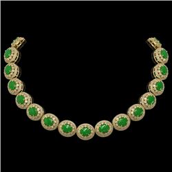 101.75 ctw Jade & Diamond Victorian Necklace 14K Yellow Gold - REF-2594N5F