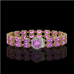 24.82 ctw Amethyst & Diamond Bracelet 14K Yellow Gold - REF-218M2G
