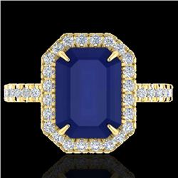 REF-77Y3X - SKU: 21435 ---- 5.33 ctw Sapphire & Micro Pave VS/SI Diamond Ring 18k Yellow Gold Designer Brand Luxury Jewelry, made in the USA ...