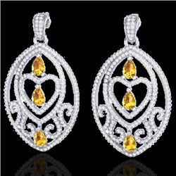 7 CTW Sapph Yell & Micro Pave VS/SI Diamond Heart Earrings 18K White Gold - REF-381F8M - 21166