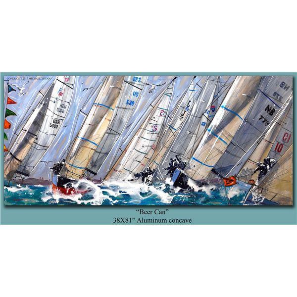 Michael Bryan captures the excitement and motion of the "Beer Can Races" at Newport Beach, California, in this 18x40" hand-worked gic...