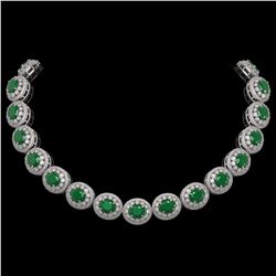 111.75 ctw Emerald & Diamond Victorian Necklace 14K White Gold - REF-3094W9H