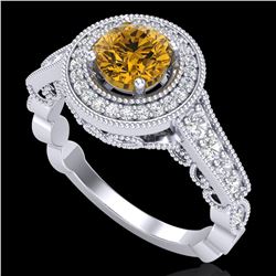 REF-203H2R - SKU: 34182 ---- 1.4 ctw SI/I Fancy Intense Yellow Diamond Antique Ring 10k White Gold Designer Brand Luxury Jewelry, made in the USA