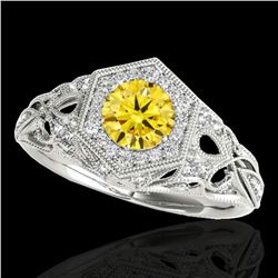1.4 ctw SI/I Fancy Intense Yellow Diamond Antique Ring 10k White Gold - REF-203H2R