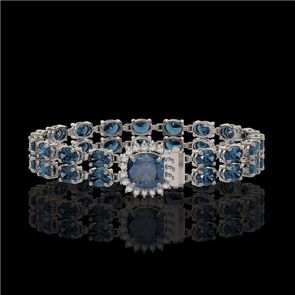 20.99 ctw Sapphire & Diamond Bracelet 14K White Gold - REF-250G9W