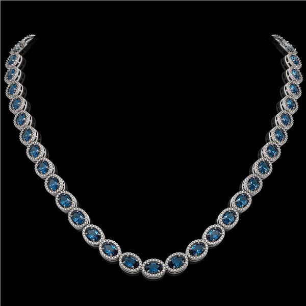 33.25 ctw London Topaz & Diamond Micro Pave Halo Necklace 10k White Gold - REF-600G2W