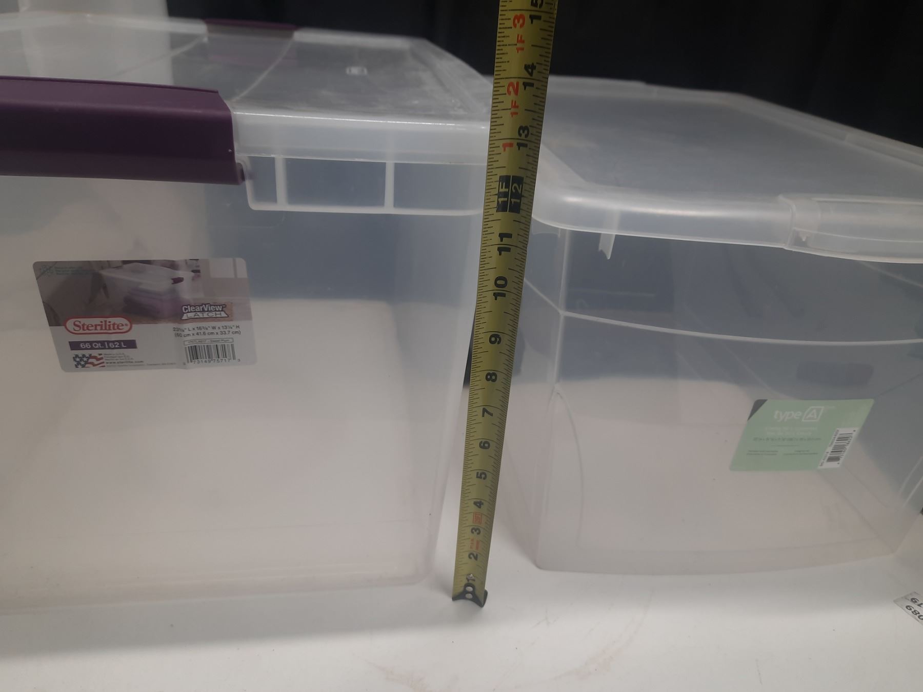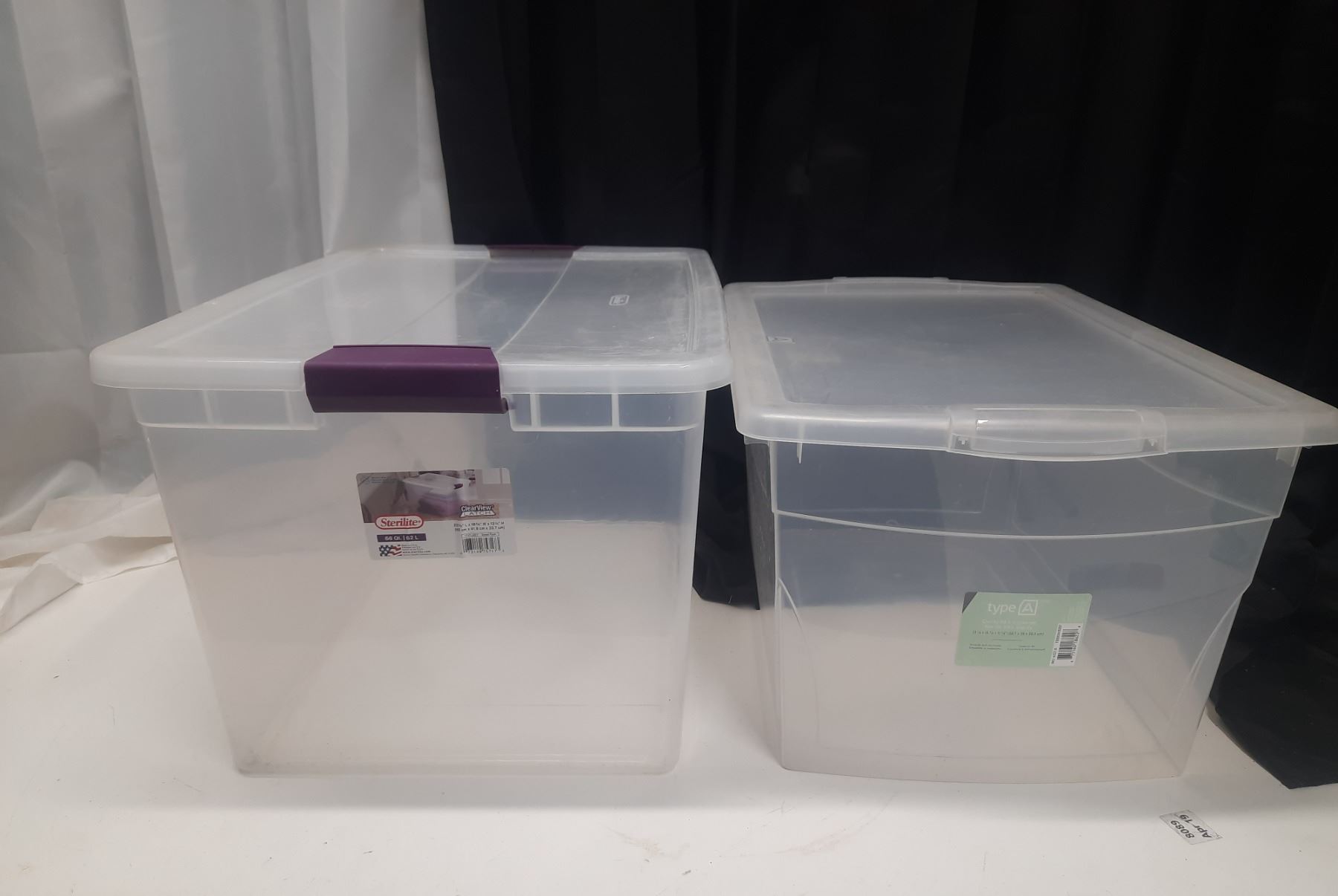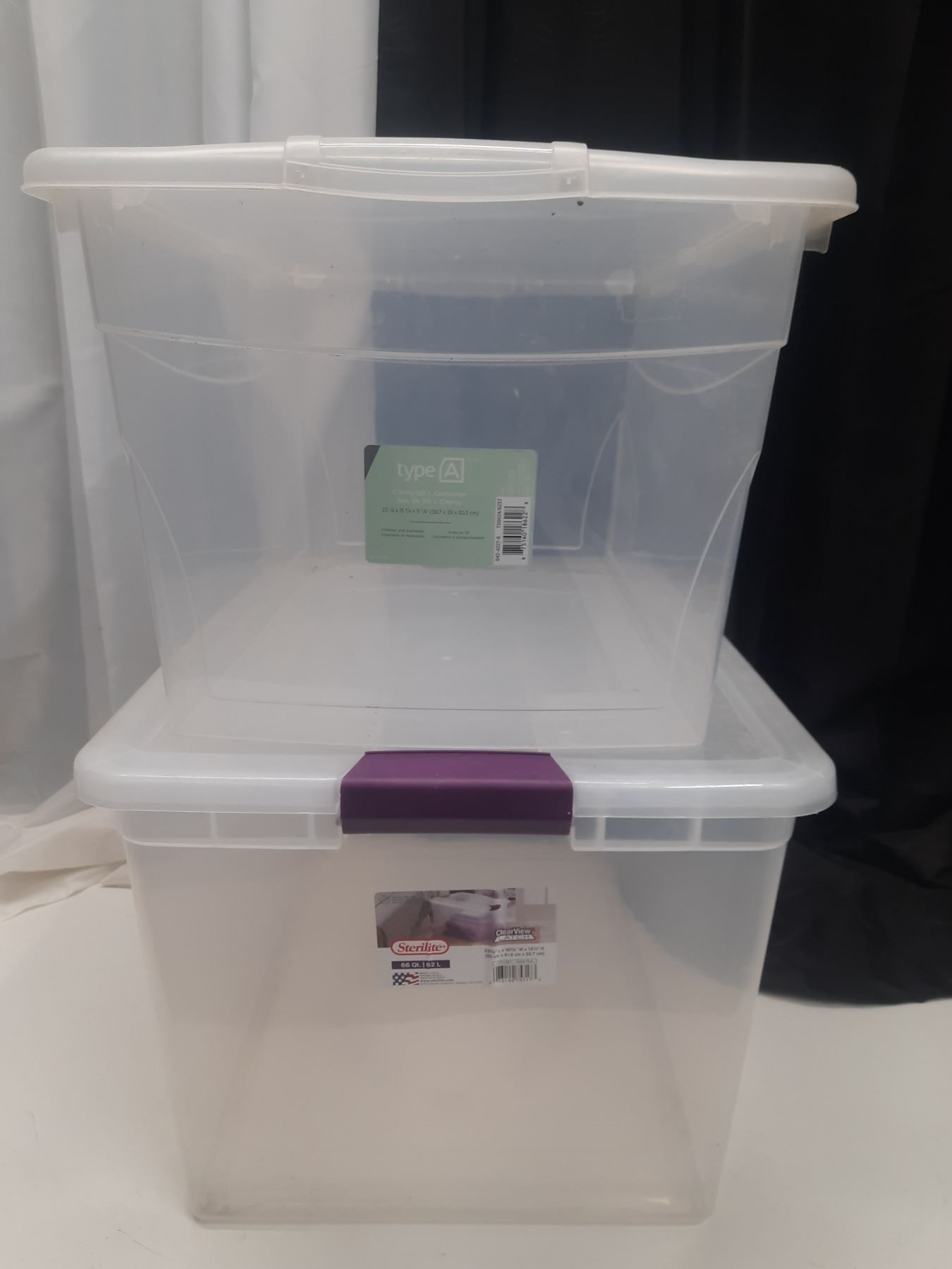 (1) Sterilite 62L and (1) Type A 50 clear strage container.