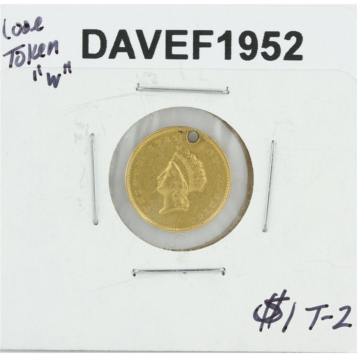 One $1 T-2 Love Token "W" Liberty Head Gold Coin.