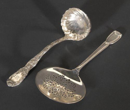 1 TIFFANY "CHRYSANTHEMUM" 7 1/2" LADLE together with a TIFFANY "CASTILLIAN" SERVER