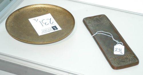 1 TIFFANY STUDIOS 8" DORE BOWL together with a TIFFANY STUDIOS "ZODIAC" PEN TRAY, 9 3/4" long, wear and stains, packing and shipping $20