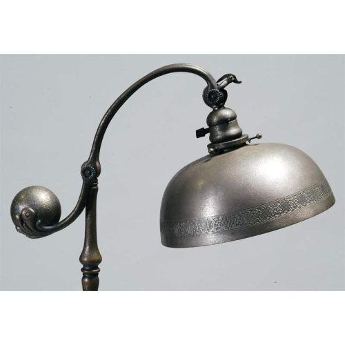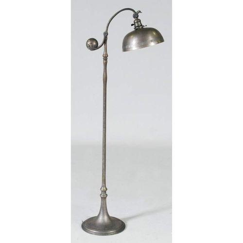 1 TIFFANY STUDIOS BRONZE FLOOR<BR>LAMP<BR>counter balance model in<BR>silvered dore with a matching<BR>bronze shade, stamped with<BR>model #676 and "Tiffany<BR>Studios/New York" underneath<BR>54" high, shade 10" diameter<BR>early 20th century <BR>CONDITION REPORT: excellent with light surface wear.<BR>PACKING AND SHIPPING -see recommended.