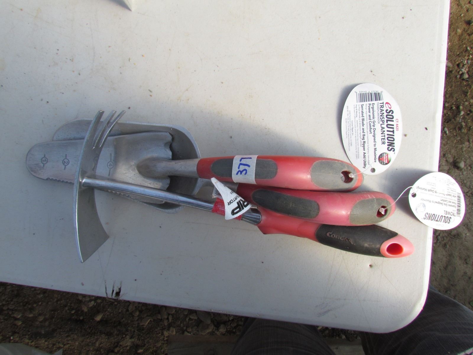 1 TRANSPLANTER, 1 TROWEL, 1 HOE CULTIVATOR
