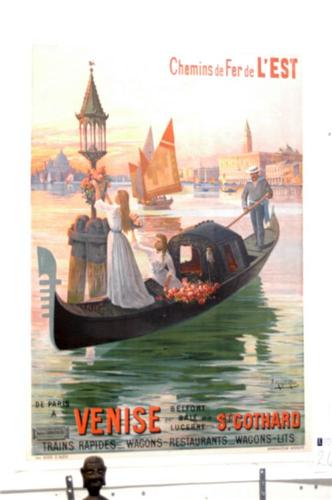 1 TRAVEL POSTER, "VENISE" for Venice, Italy, 41"x28" by Hugo D'Alesi, circa 1900, unframed, mounted to linen which is mounted to a board, condition otherwise, excellent