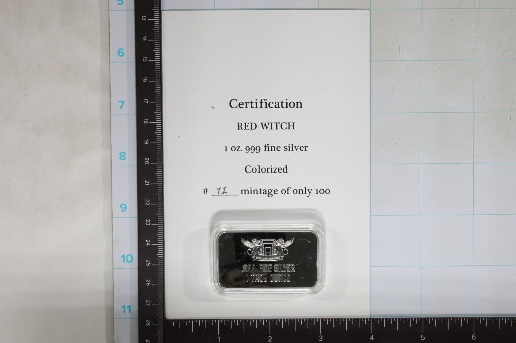 INGOT, RED WITCH, #71 OF 100, BRAND NEW IN HARD PLASTIC CAPSULE WITH CERTIFICATE