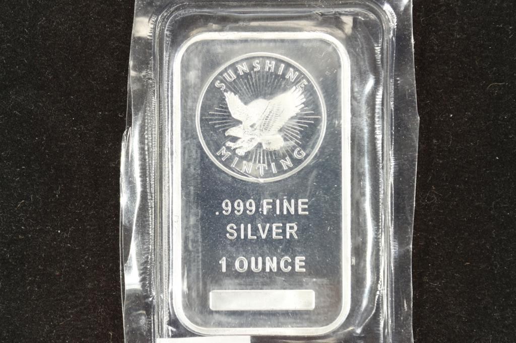 1 TROY OZ .999 FINE SILVER BAR SUNSHINE MINTING