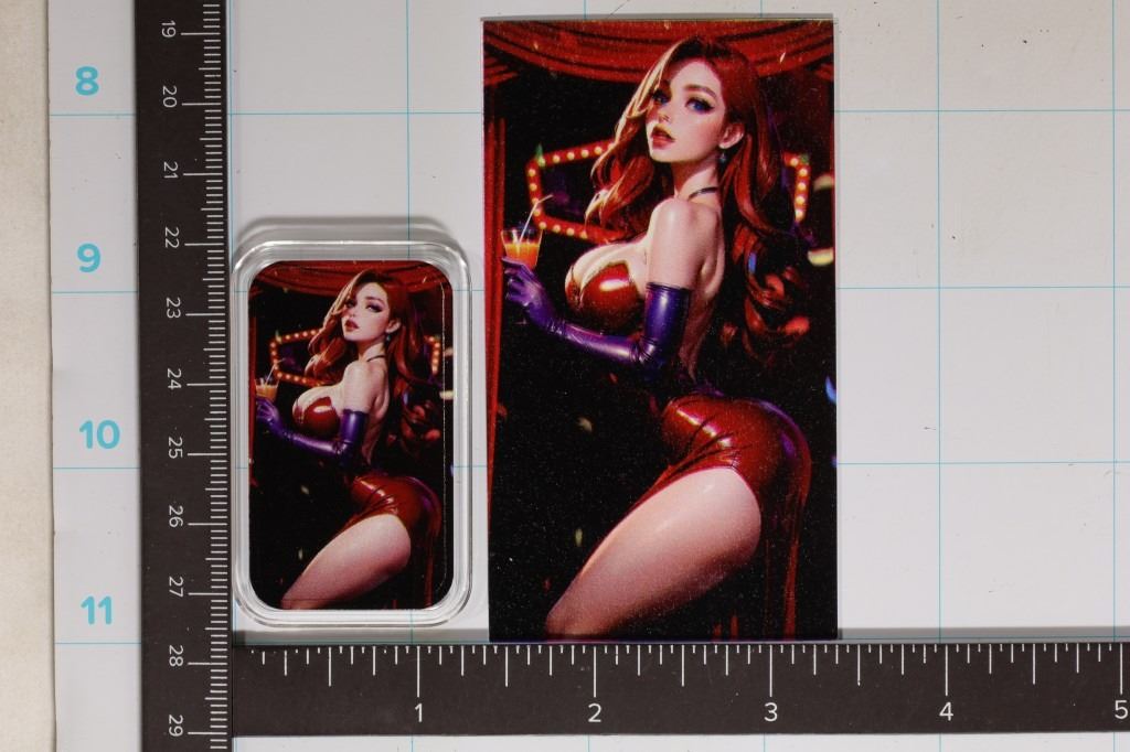 INGOT. WOMAN IN RED LEATHER DRESS #53 OF 100 BRAND NEW IN HARD PLASTIC CAPSULE WITH CERTIFICATE