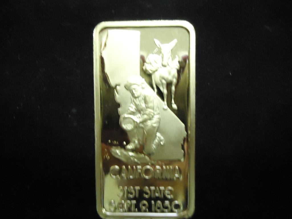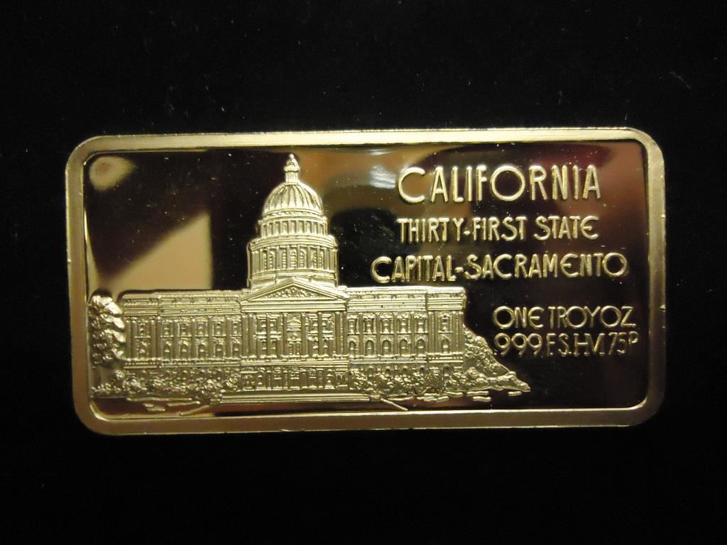 1 TROY OZ .999 FINE SILVER GOLD PLATED CALIFORNIA