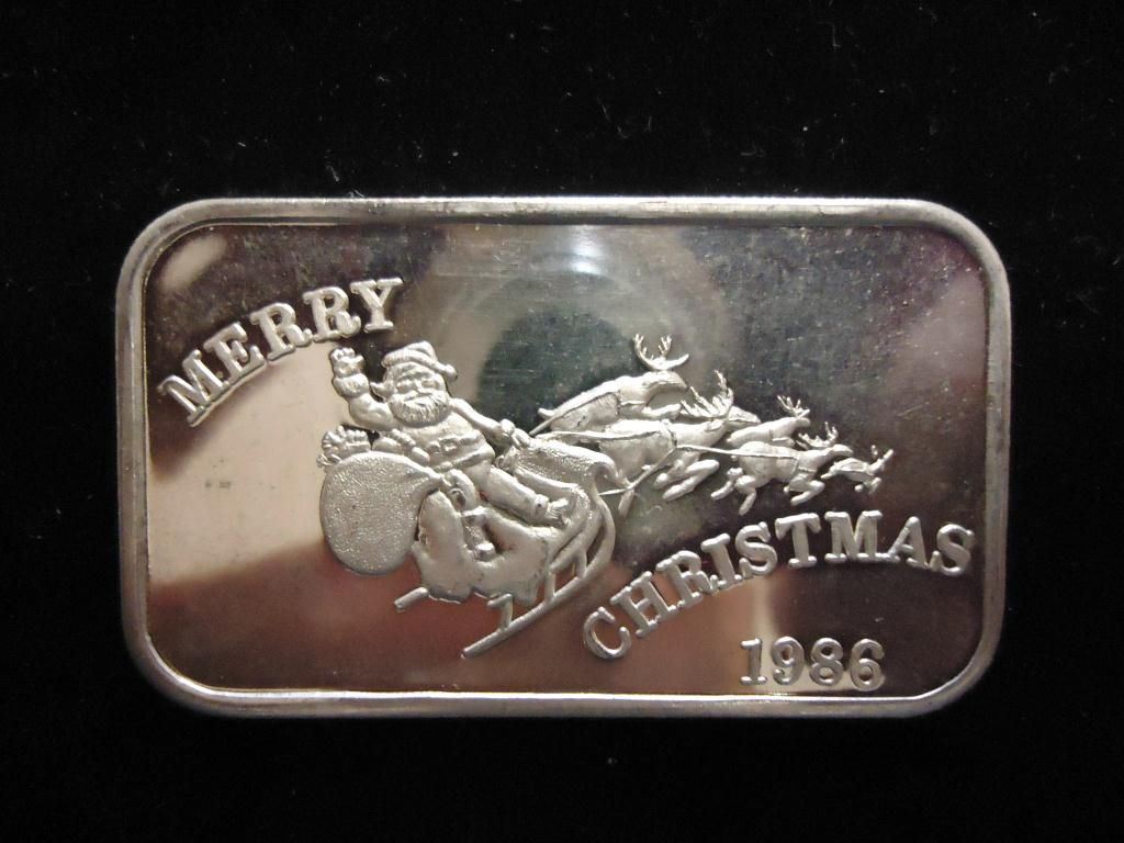 1 TROY OZ .999 FINE SILVER INGOT CHRISTMAS 1986