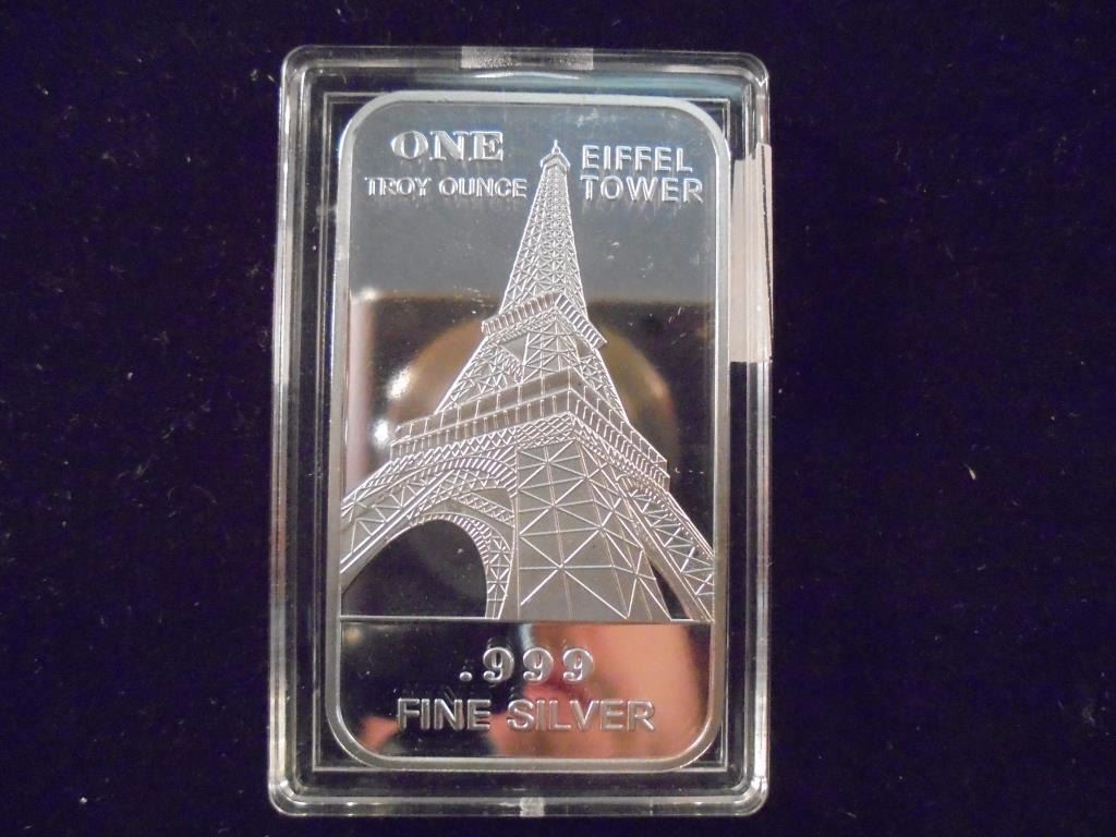 1 TROY OZ .999 FINE SILVER INGOT EIFFEL TOWER PF
