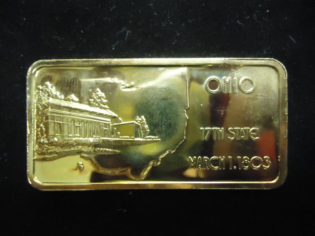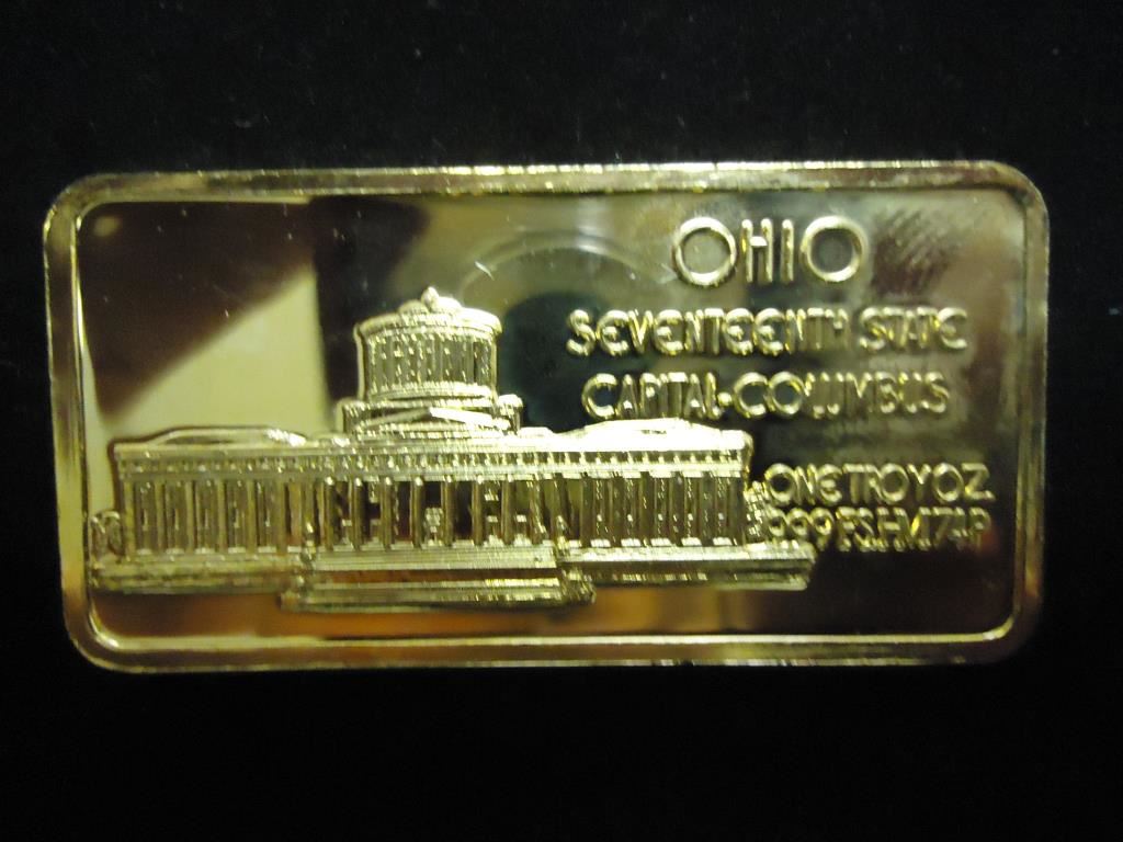 1 TROY OZ .999 FINE SILVER INGOT GOLD PLATED OHIO