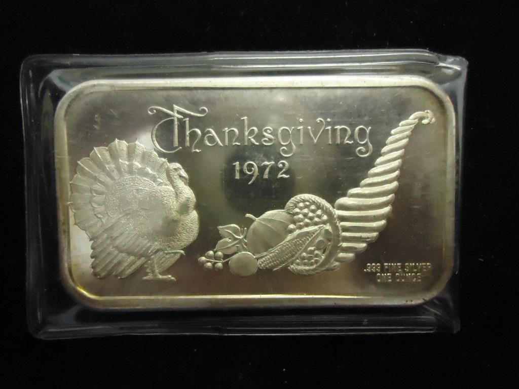 1 TROY OZ .999 FINE SILVER INGOT THANKSGIVING 1972