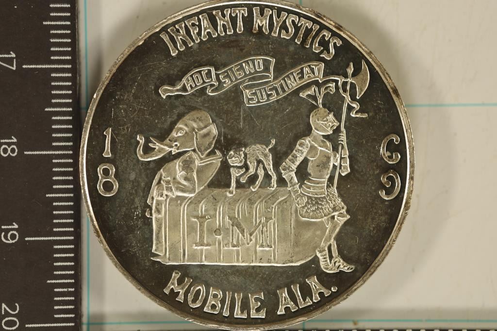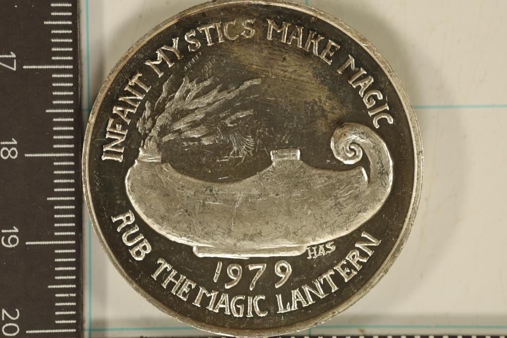 INFANT MYSTICS MOBIL ALABAMA ROUND "RUB THE MAJIC LANTERN" SOME TONING ON THE REVERSE WITH SCRATCHES. EDGE MARKED