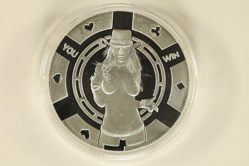WOMAN ON OBV. "YOU WIN" AND "YOU LOSE" ON REV., POKER CHIP DESIGN BRAND NEW IN HARD PLASTIC CAPSULE