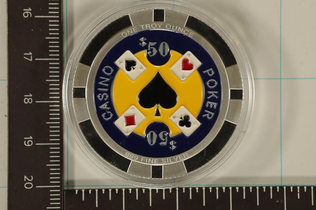 TWO WOMEN ON OBVERSE, POKER CHIP DESIGN COLORIZED ON REVERSE, BRAND NEW IN HARD PLASTIC CAPSULE AND BAG