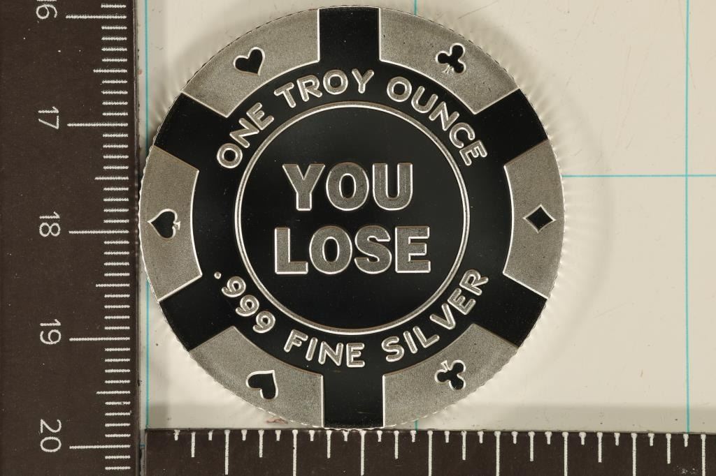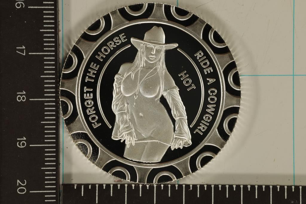 FORGET THE HORSE, RIDE A HOT COWGIRL ON THE OBVERSE AND "YOU LOSE" POKER CHIP DESIGN ON THE REVERSE. IN HARD PLASTIC CAPSULE.