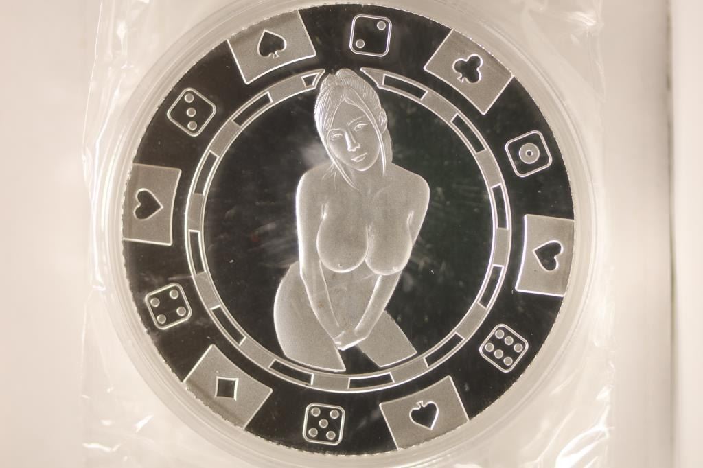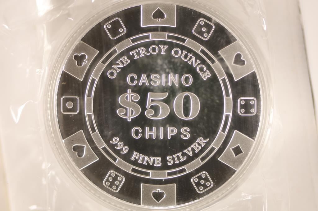 ON OBV. AND CASINO $50 CHIP ON REVERSE, NEW IN HARD PLASTIC CASE AND BAG