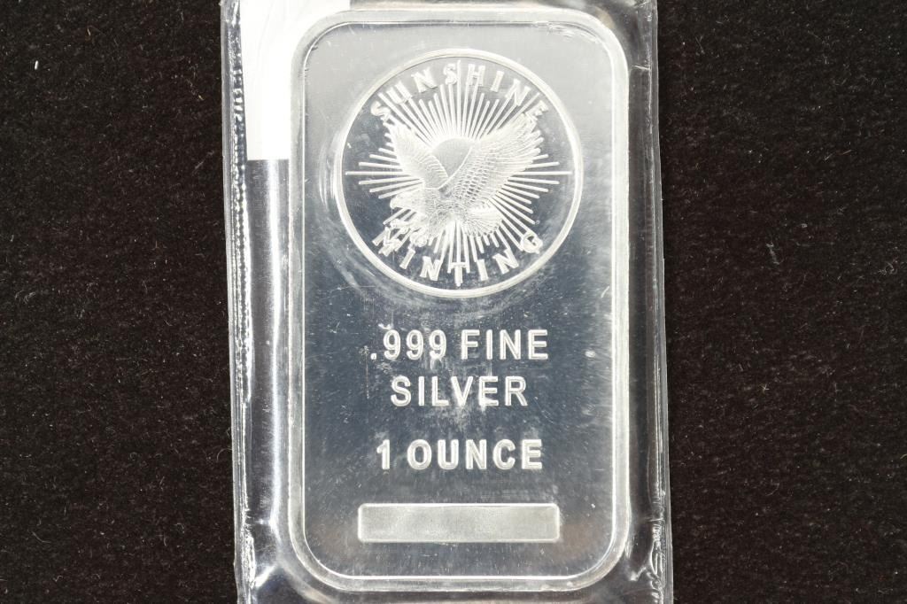 1 TROY OZ .999 FINE SILVER PROOF BAR SUNSHINE MINT