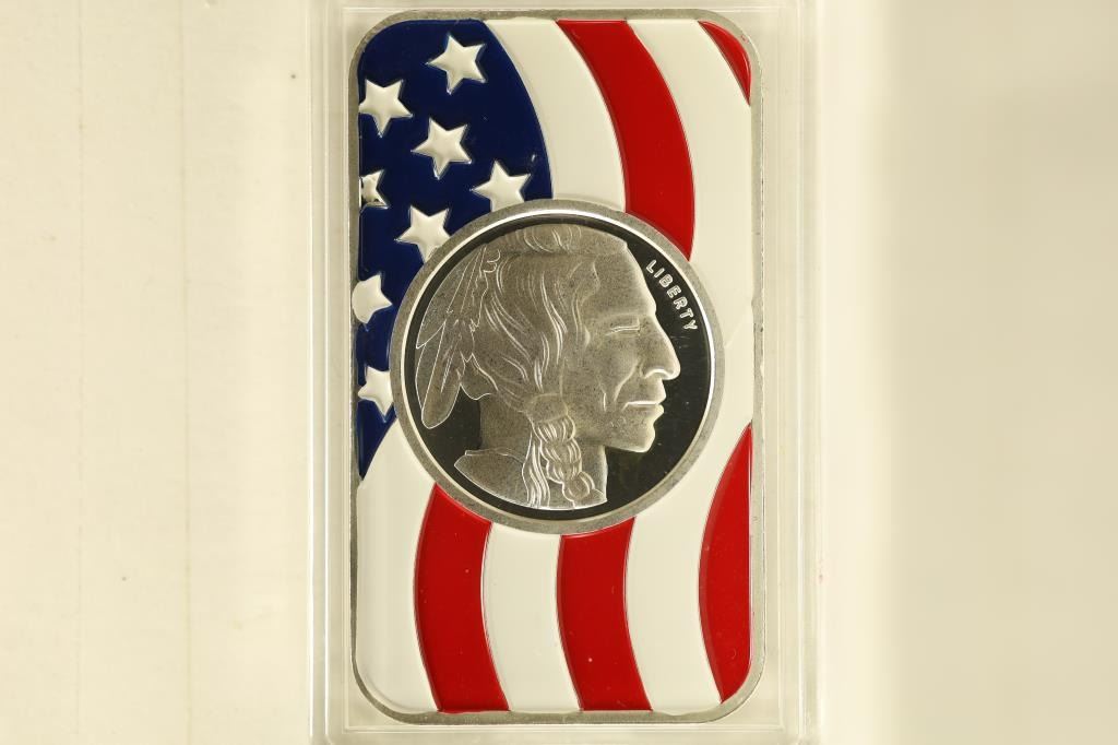 AMERICAN FLAG WITH INDIAN BRAND NEW IN HARD PLASTIC CAPSULE AND BAG