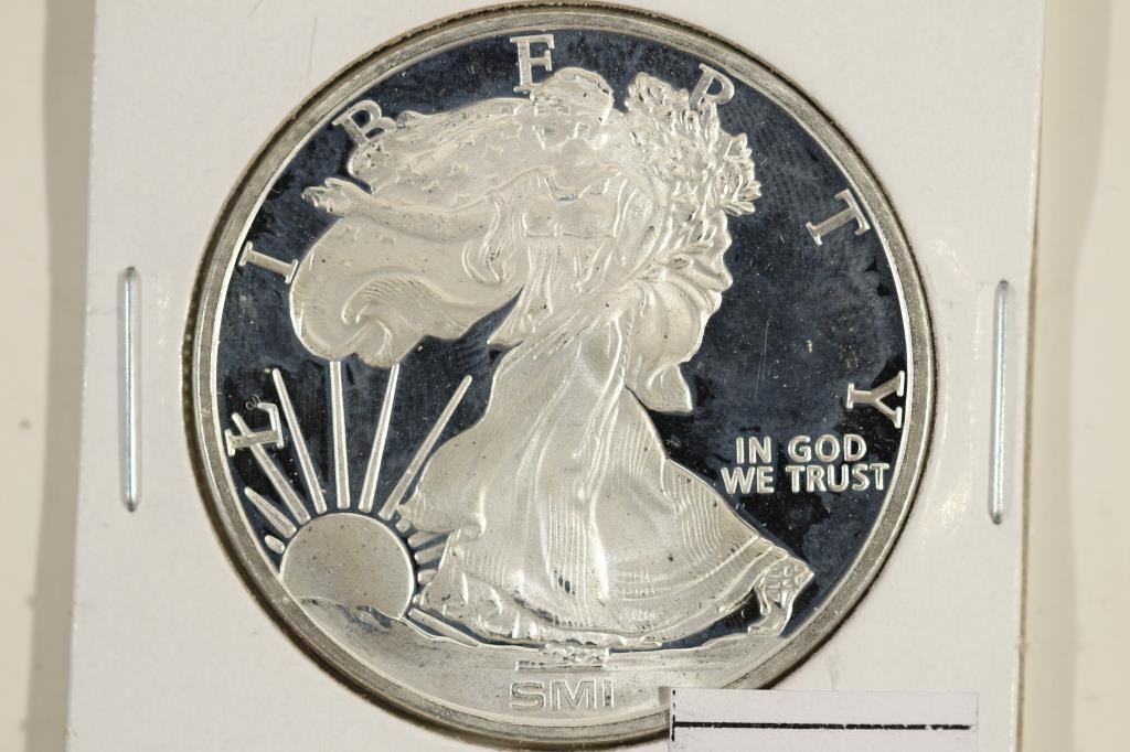 1 TROY OZ .999 FINE SILVER PROOF ROUND LADY LIB.