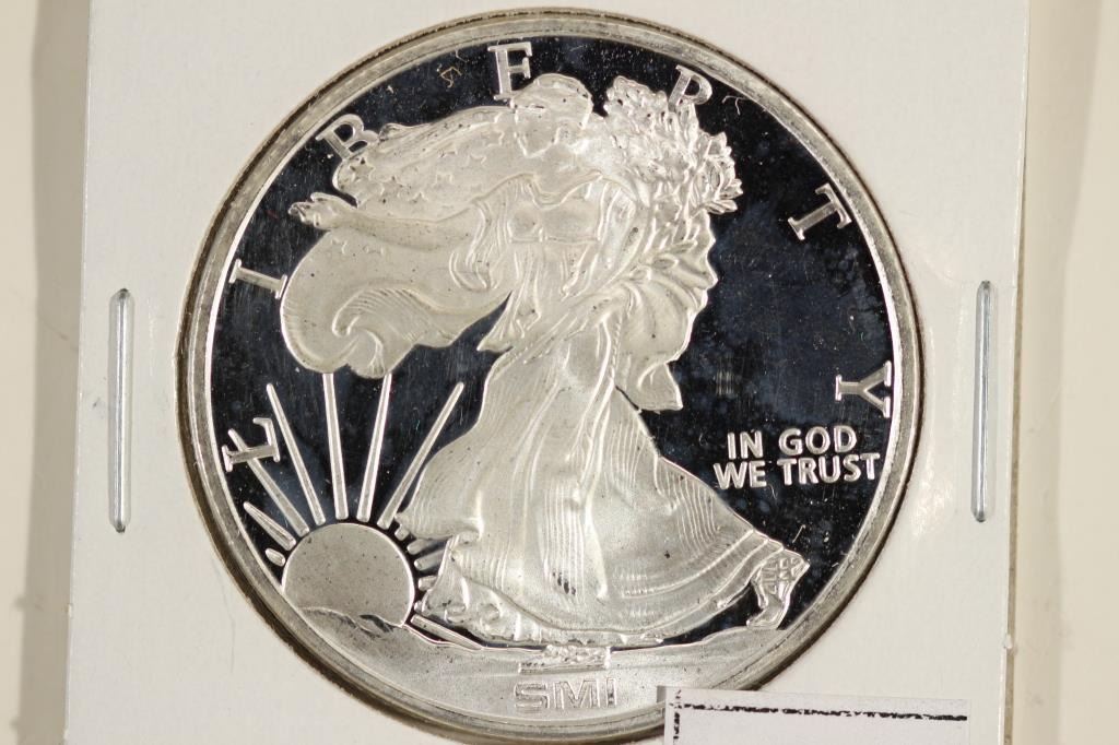 1 TROY OZ .999 FINE SILVER PROOF ROUND LADY LIB.