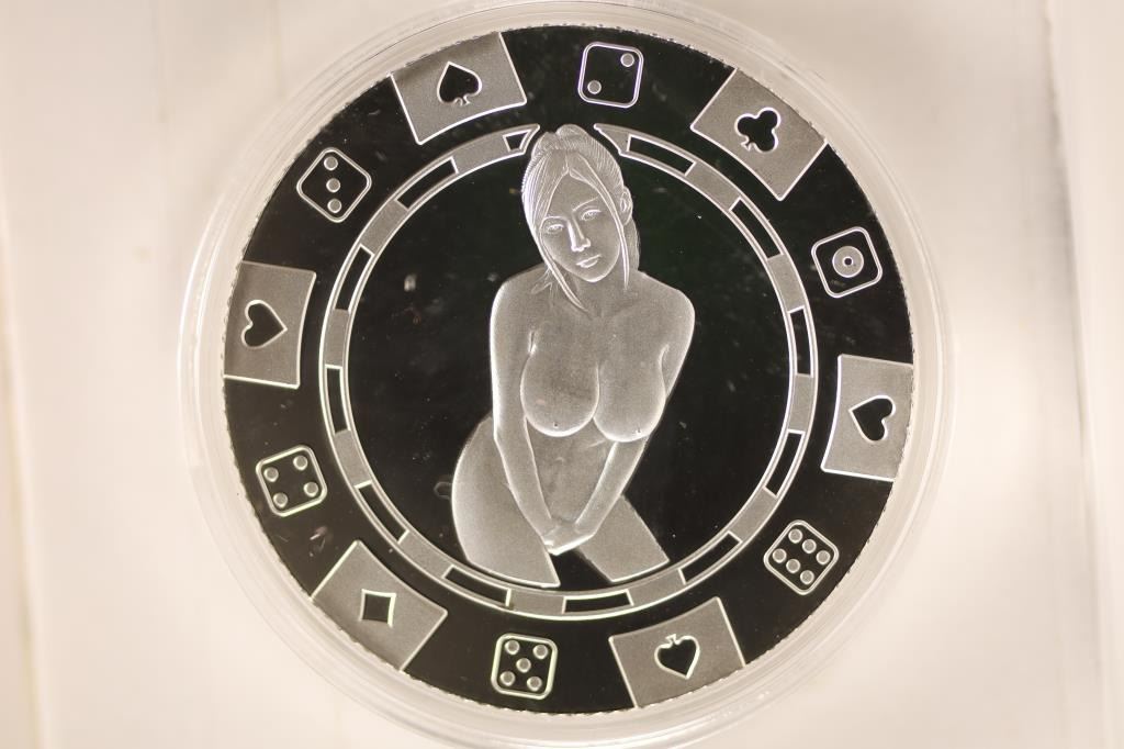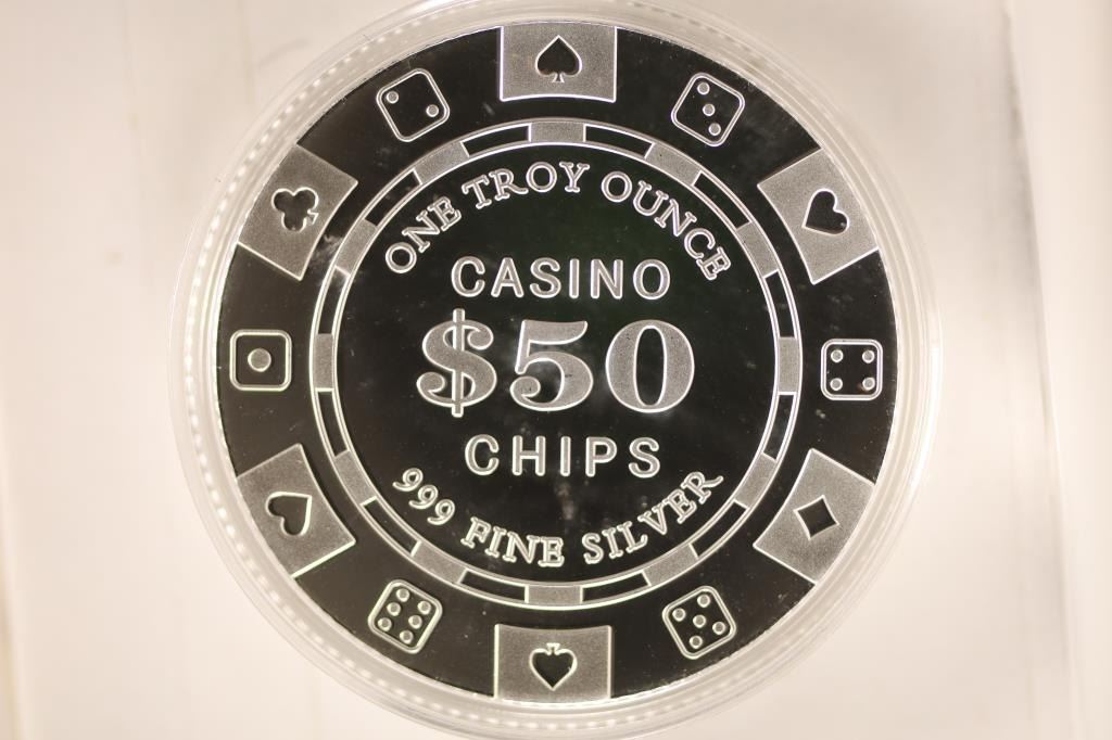 THEMED POKER CHIP DESIGN. BRAND NEW IN HARD PLASTIC CAPSULE AND BAG.