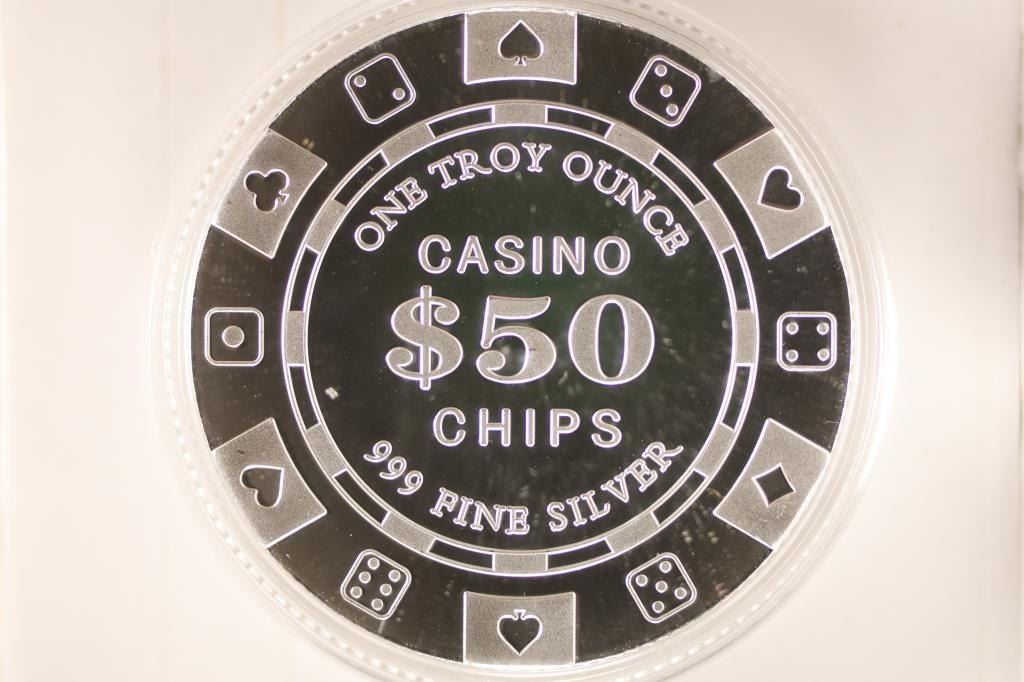 GIRL WITH SNAKE ON ONE SIDE AND $50 CASINO CHIP ON THE OTHER, BRAND NEW IN CAPSULE PLUS PLASTIC BAG
