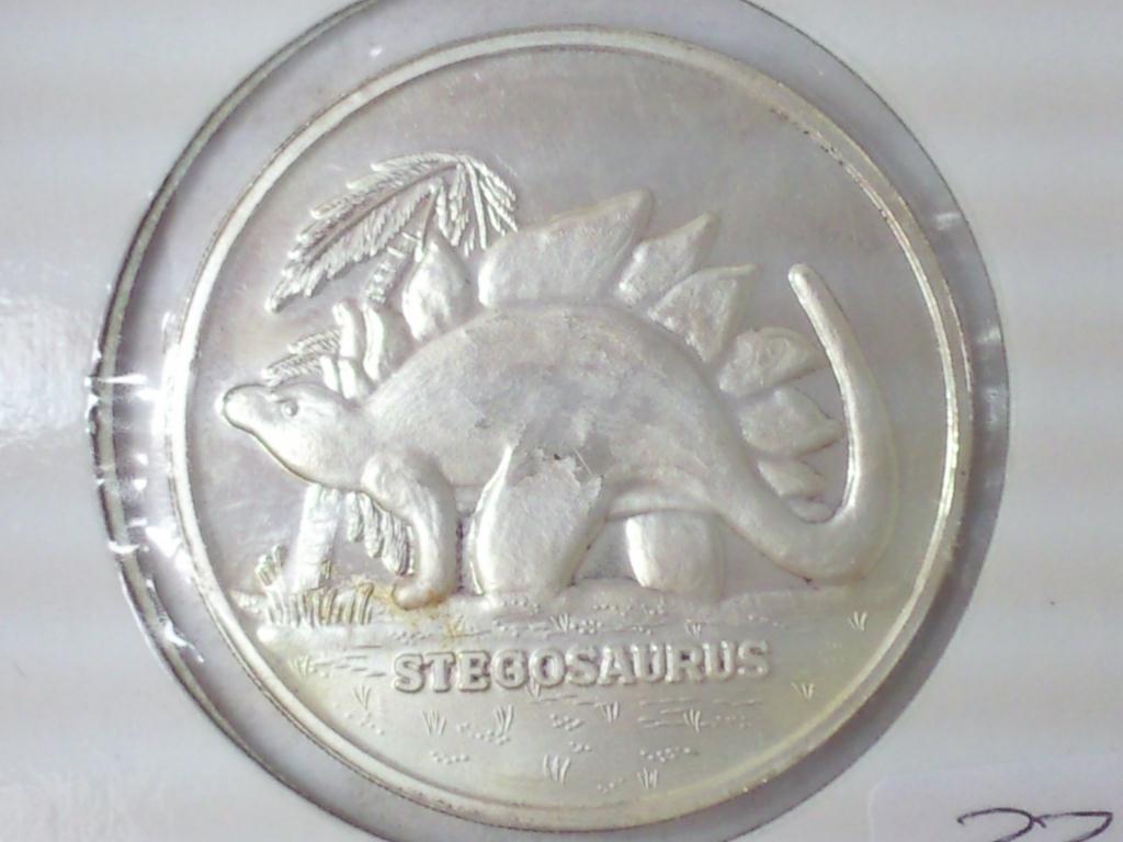 1 TROY OZ .999 FINE SILVER ROUND STEGOSAURUS
