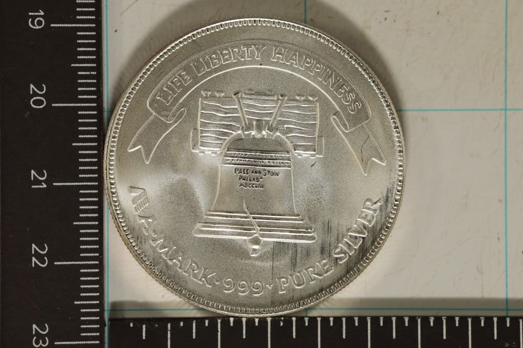 SILVER. LIFE, LIBERTY AND HAPPINESS, IN HARD PLASTIC CAPSULE