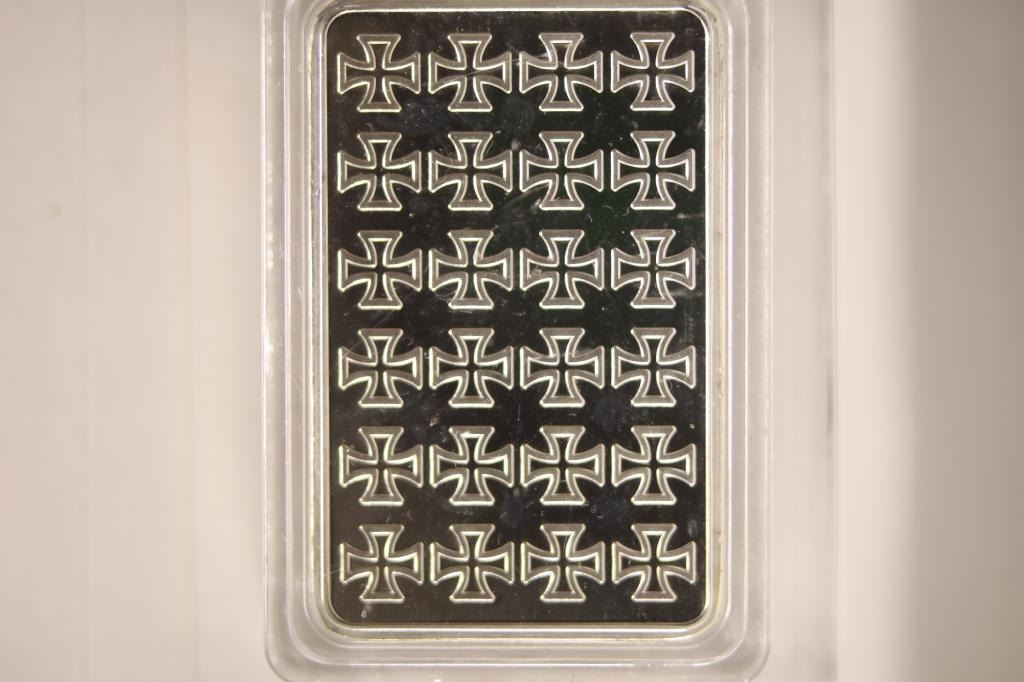 SILVER BUT IS LAYERED TO GIVE IT THE LOOK, IN HARD PLASTIC CAPSULE