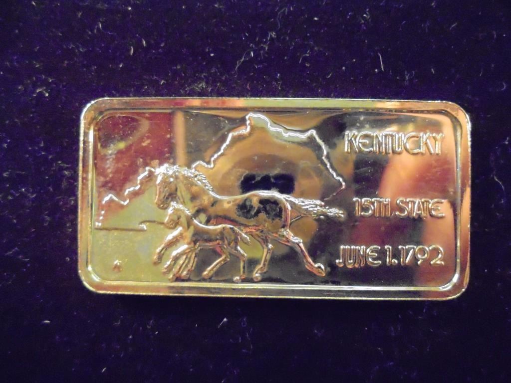 1 TROY OZ. GOLD PLATED SILVER INGOT KENTUCKY