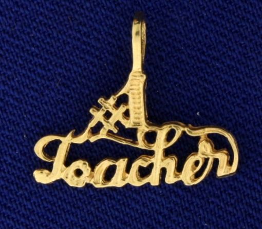 In 14k yellow gold. 1/2 Inch long with bale and 3/4 inches wide. 0.4g.
