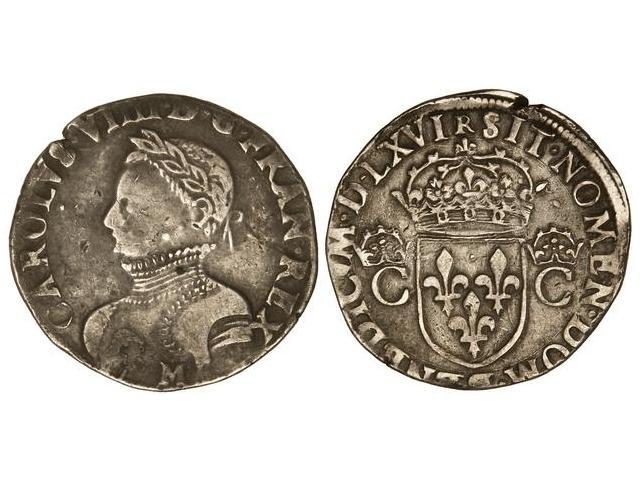 1 Testón. - 1566-M. - CARLOS IX. - TOULOUSE. - R. - AR. MBC. - -