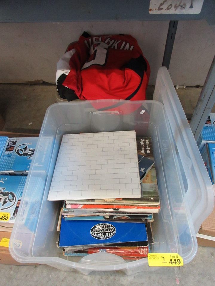 1 Tote of LP Records & 1 Tote of Sports Jerseys