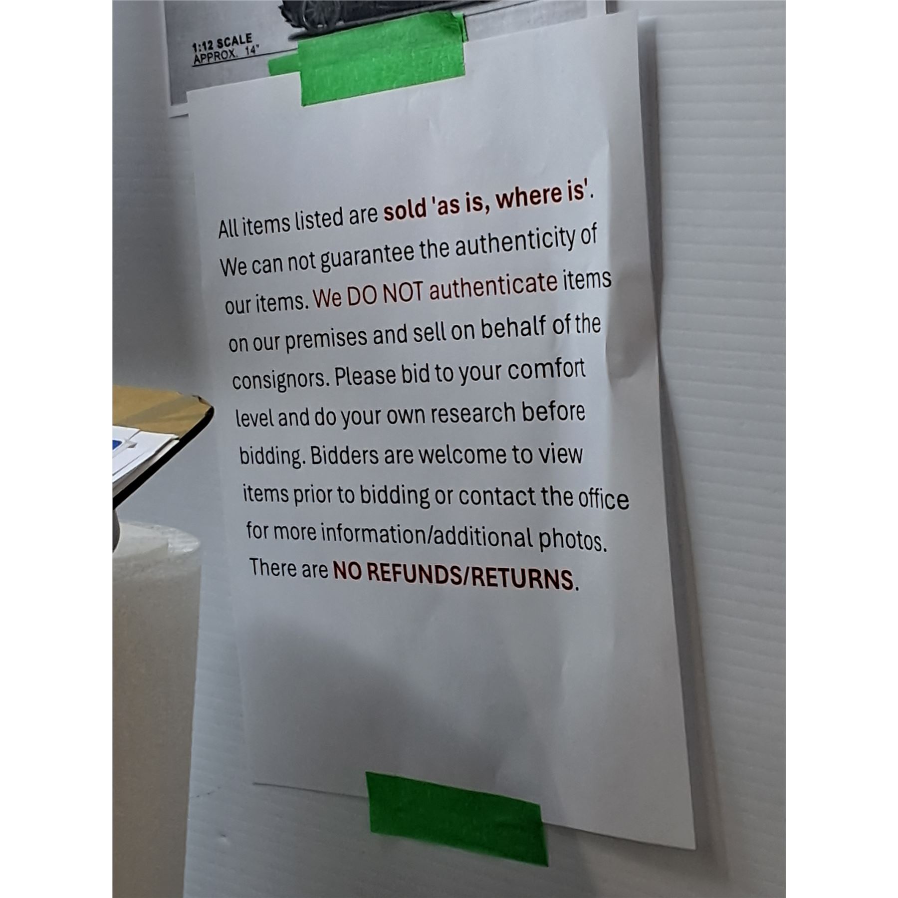 All purchases are bought AS IS, WHERE IS. No warranties or guarantees are applicable to any purchases.